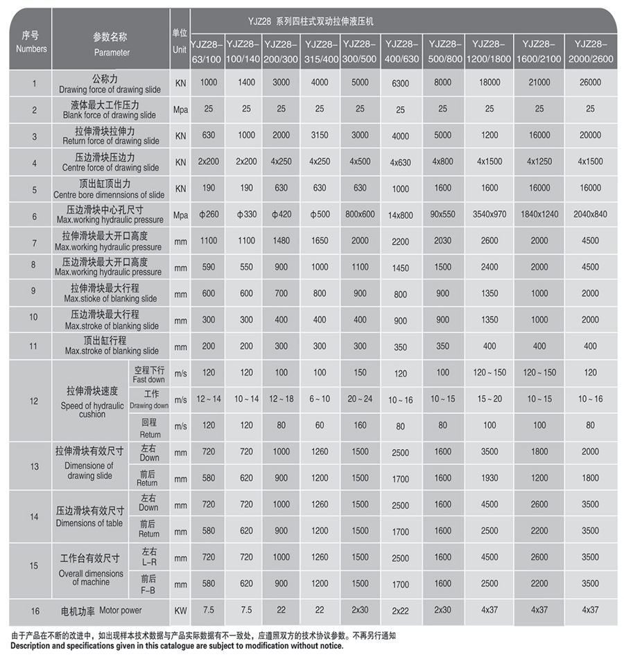 YJZ28-系列四柱式、框架式雙動薄板拉伸液壓機(jī)